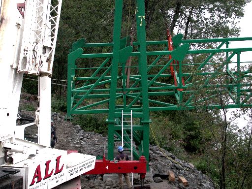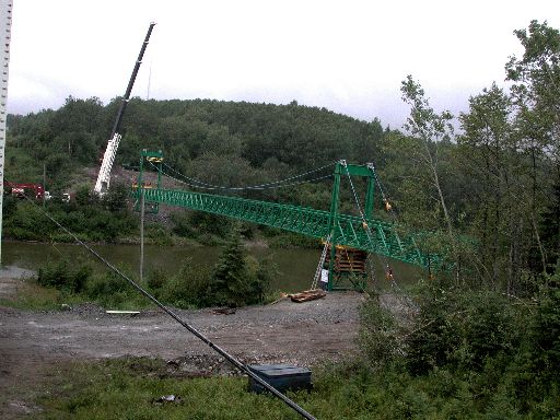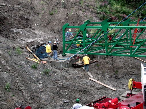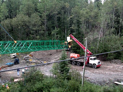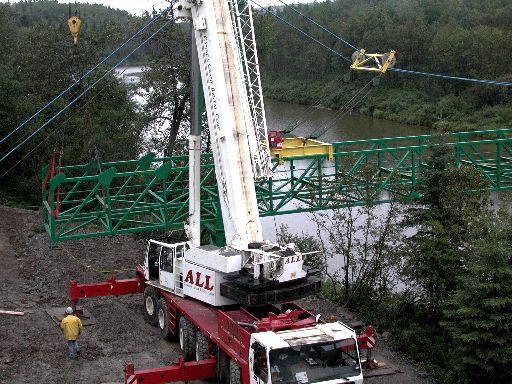 the way across the river. The crane is still supporting