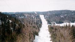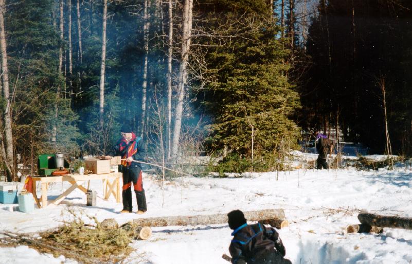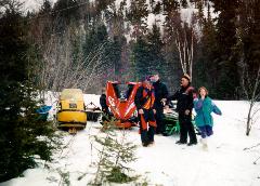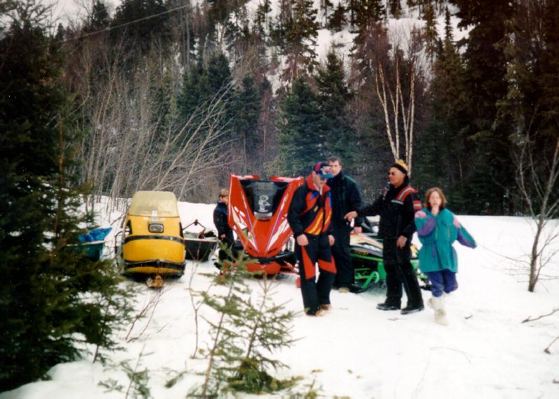 You can see the south end of Goodchild Lake on the right side of the picture. Goodchild Lake is about 2 1/2 kilometers long in the north-south direction. The small dots in the center of the picture are snowmobiles and snowmobilers attending the picnic.