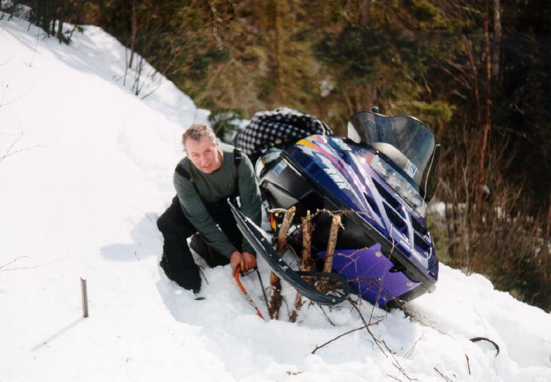 Another intrepid snowmobiler tried to find a way to drive his snowmobiler to the lake above.