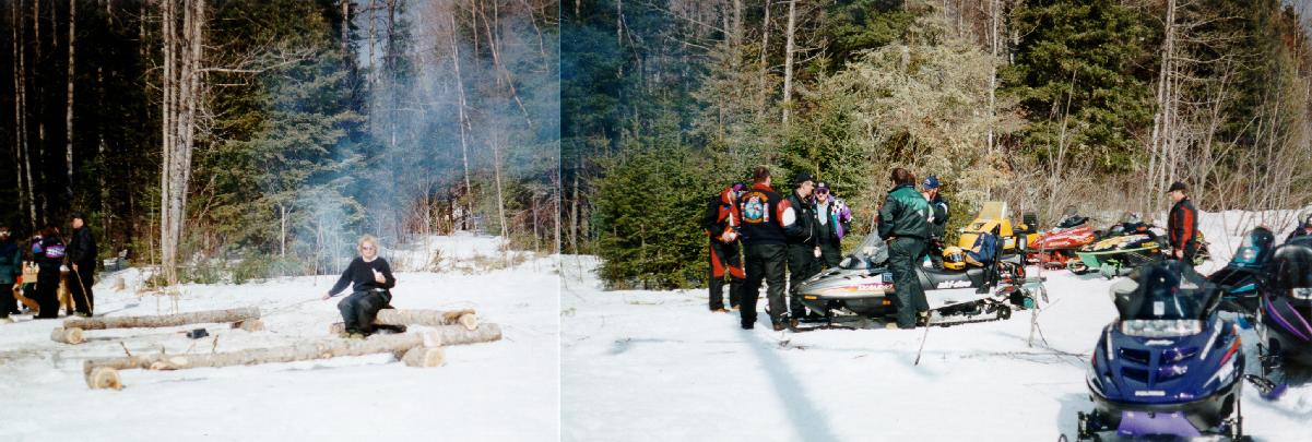 What do snowmobilers do at a picnic? Talk about snowmobiling! Only one person using the hand crafted benches.