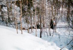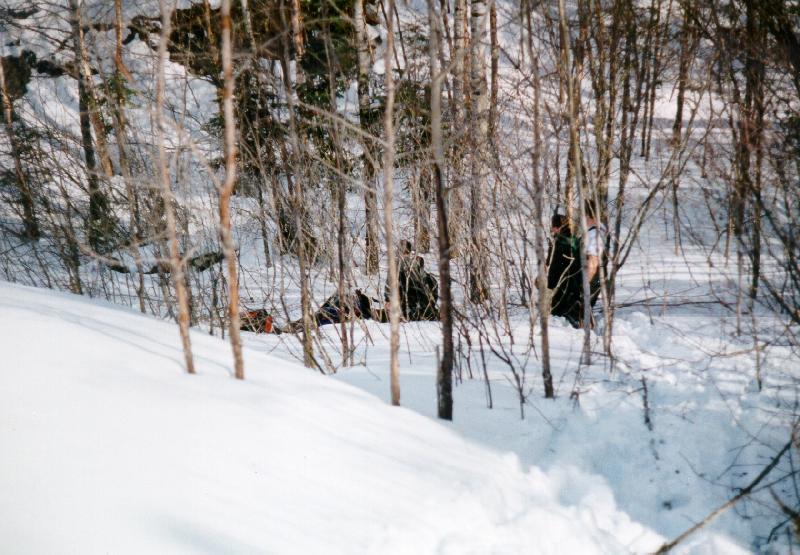 If you look at the above picture, you will see some rocks near the top of the hill. One of our intrepid snowmobilers climbed the hill the hard way with his snowmobile and topped the feat off by landing on top of a small bush. It was just above the rocks were this picture was taken: